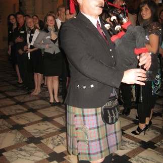 Our chatter subsided as the evening began with the bagpipe player marching in. In the United States, we really only hear bagpipes at certain funeral processions, and I think many of us associate the sound with a sort of sad longing, but, as with any instrument, the bagpipes are not always so melancholy. Paired with our building excitement, it was instead a sort of climatic signal that not only was the party beginning but so was our "magical" semester across the pond.