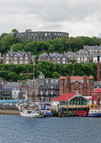 After lunch, I come down from the Highlands to the coastal town of Oban. The town's name means "little bay" in Gaelic, and from here you can take ferries to explore the Hebrides islands: Kerrera, Lismore, Mull, the Morven peninsula, Iona, Coll, Colonsay, and Tiree. Aside from the islands, there is much to see closer to the town, including Dunollie Castle ruins, the Oban Distillery, and McCaig Tower.