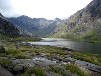 On the way to Elgol, you pass through the Red Cuillin mountains. The Cuillin Range is the mountain range that occupies most of the island. Myths state that the two mountains - Black Cuillin and Red Cuillin - were formed when the Sun's spear pierced the ground. Soon, a blister formed, and its eruption created Black Cuillin, whose molten material spread and softened, forming Red Cuillin. Clearly, the ancient Scots were describing the volcanic activity. From the hamlet Elgol, you can take a ferry ride across Loch Scavaig to Loch Coruisk, where the Back Cuillin mountains are visible.